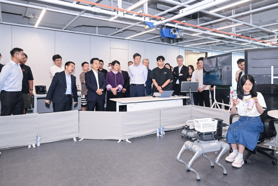 缪建民、石岱实地考察了招商局狮子山人工智能实验室四足机器人和双臂机器人硬件研发、VLA导航大模型、自研AI Agent等成果,详细了解VLA训练应用真实数据采集场地与仿真数据平台运行情况,对大家奋力拼搏、积极向上的精神状态感到欣慰,对研发工作取得的阶段性进展给予肯定。随后,缪建民主持召开座谈会,听取集团先进技术院和招商局狮子山人工智能实验室汇报,并与7名实验室青年科研骨干代表进行深入交流。